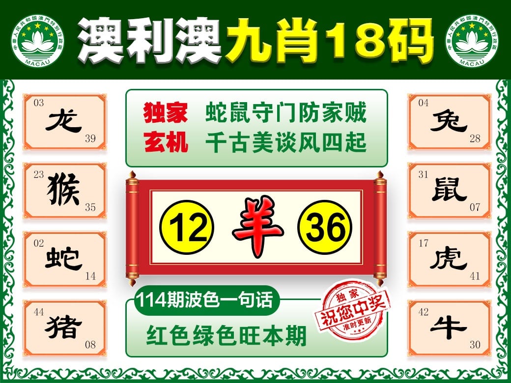 | 114期⑨肖 | 鸡兔鼠猴狗蛇猪龙羊 | 开:?00 |